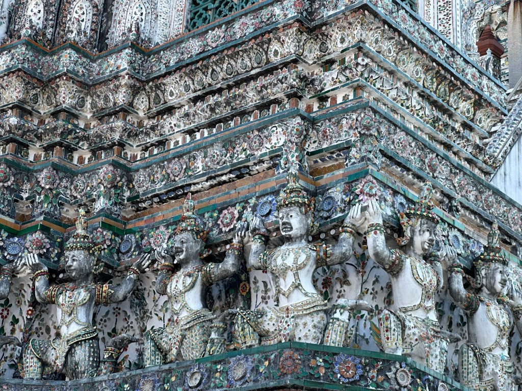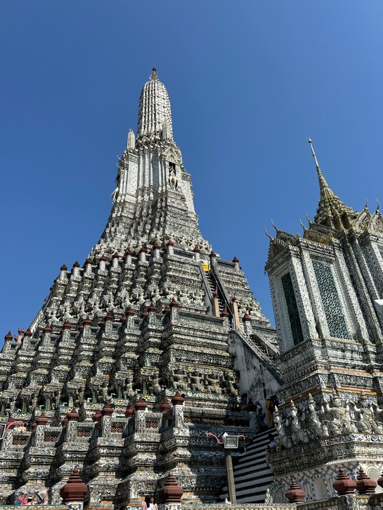We took a water taxi across Chao Prada River to get to Wat Arun (the Temple of Dawn). We were able to climb the steps of its Central Prang.