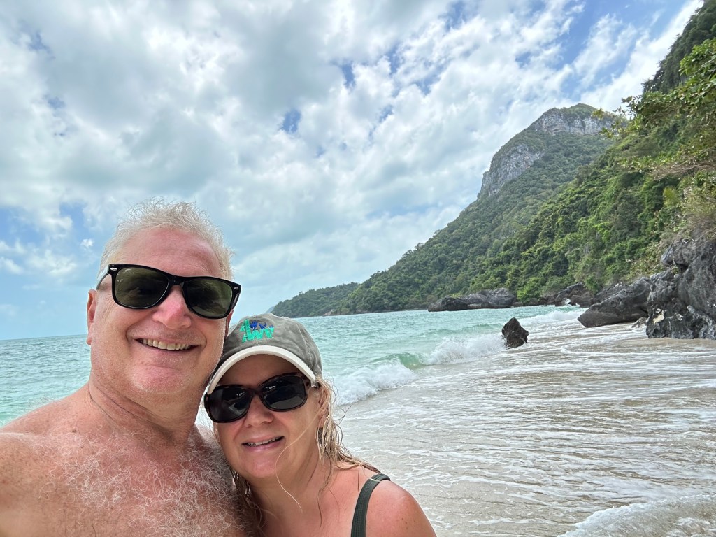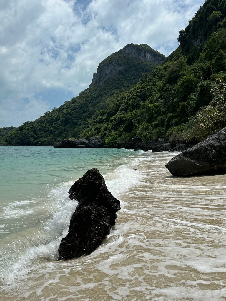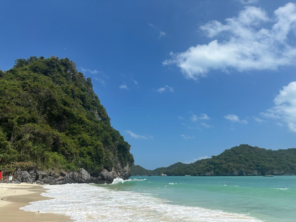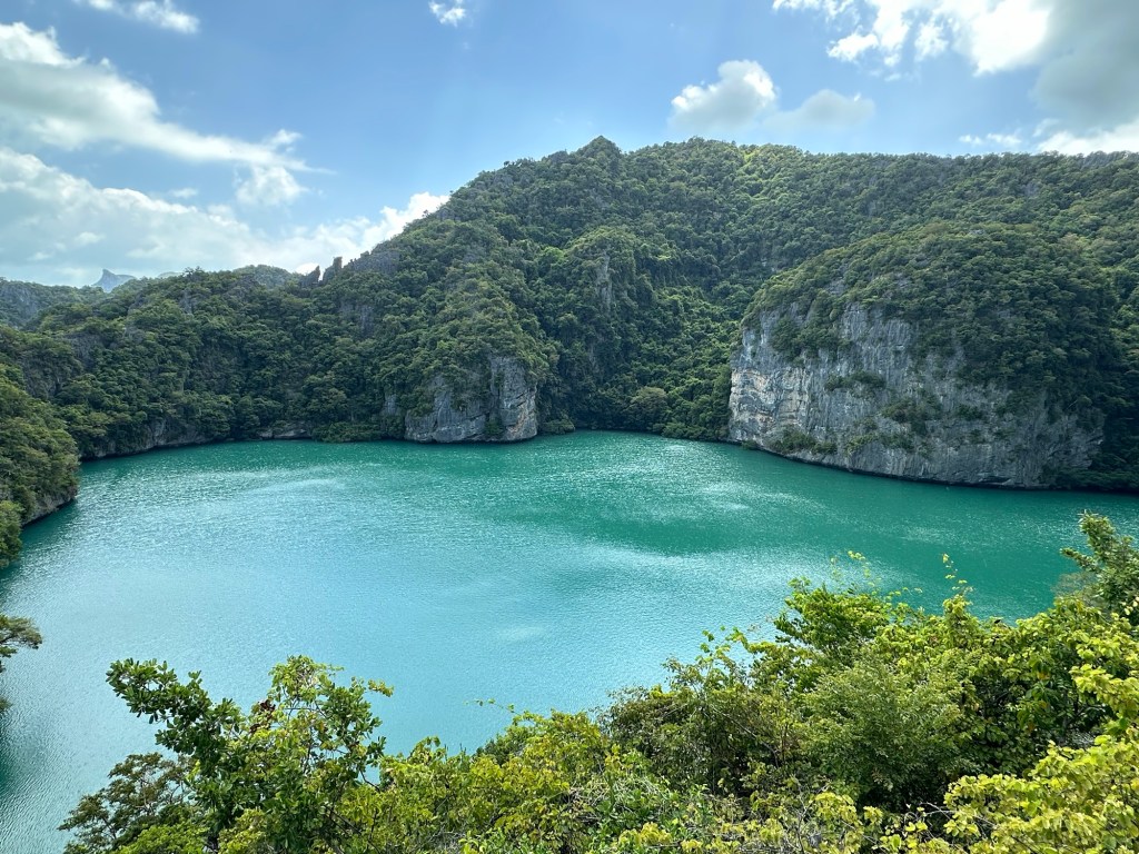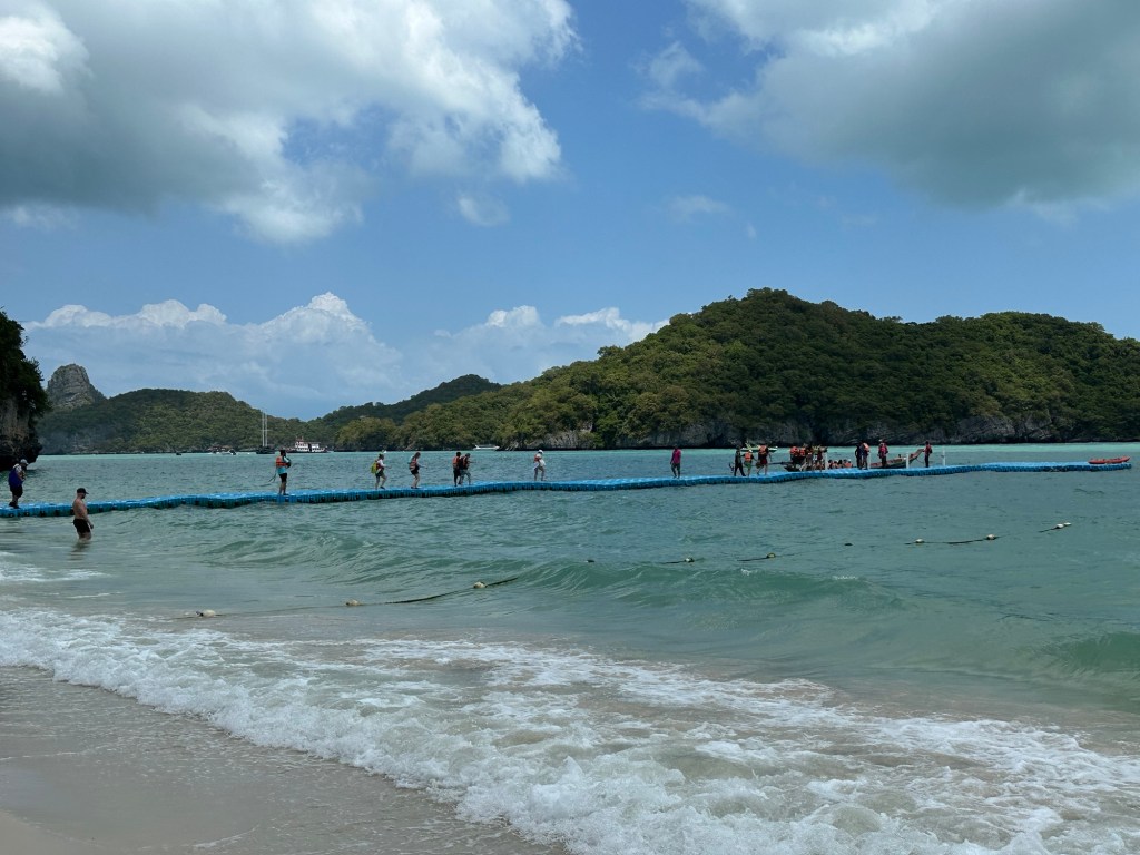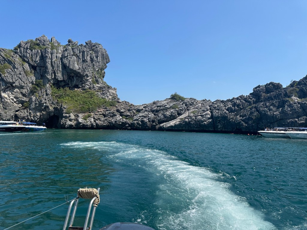 Today we spent the day on and in the water. We took Insea Speed Boat to Angthong Marine Park where we snorkeled, hiked to the Emerald Pool, and swam in some beautiful beaches. We saw many different colorful fish and coral while snorkeling.