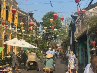 Hoi An has an area called Ancient Town which is very walkable and has plenty of restaurants and bars. It is a port city with canals that is an UNESCO World Heritage Center. At sundown, the canal in the center of town comes alive with dozens of boats filled with lanterns and life-jacketed wearing tourists The town has a famous Japanese Covered Bridge with a Pagoda, but that is currently being renovated.