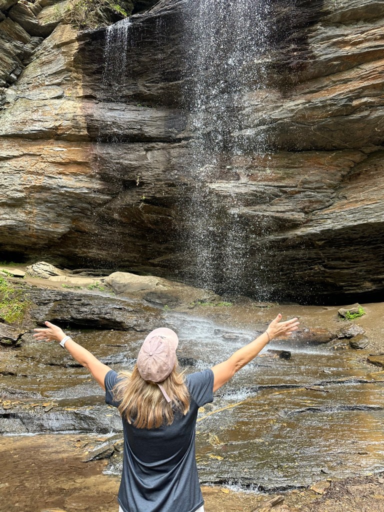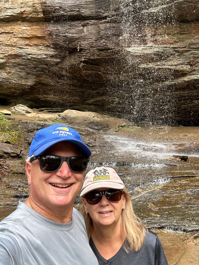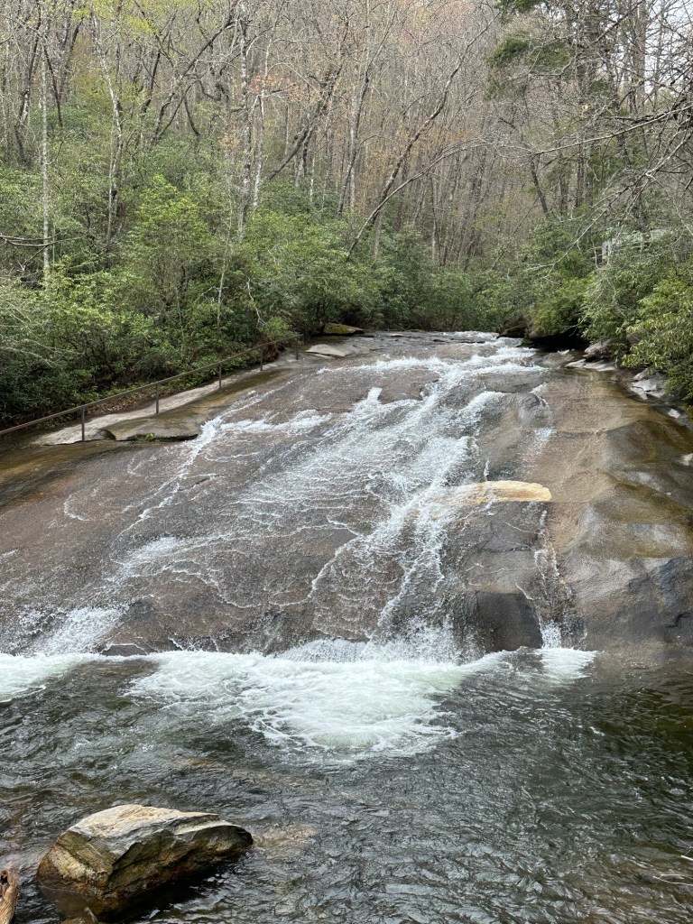 Our first adventure on Tuesday was a short drive to Pisgah National Forest where we went to Looking Glass Waterfall, hiked the Moore Core Trail to another waterfall, and then to Sliding Rock.