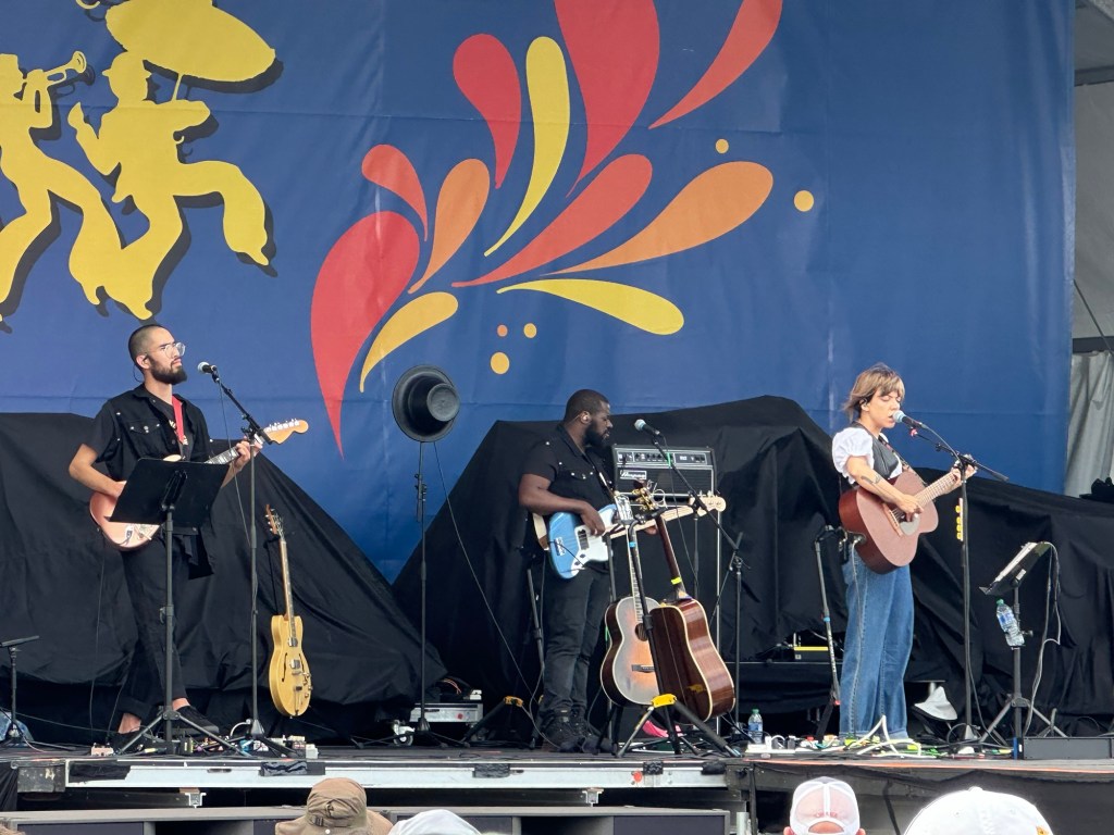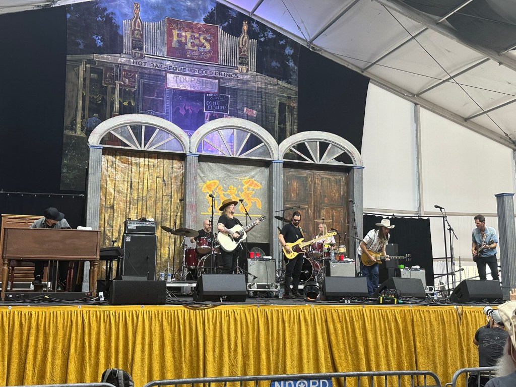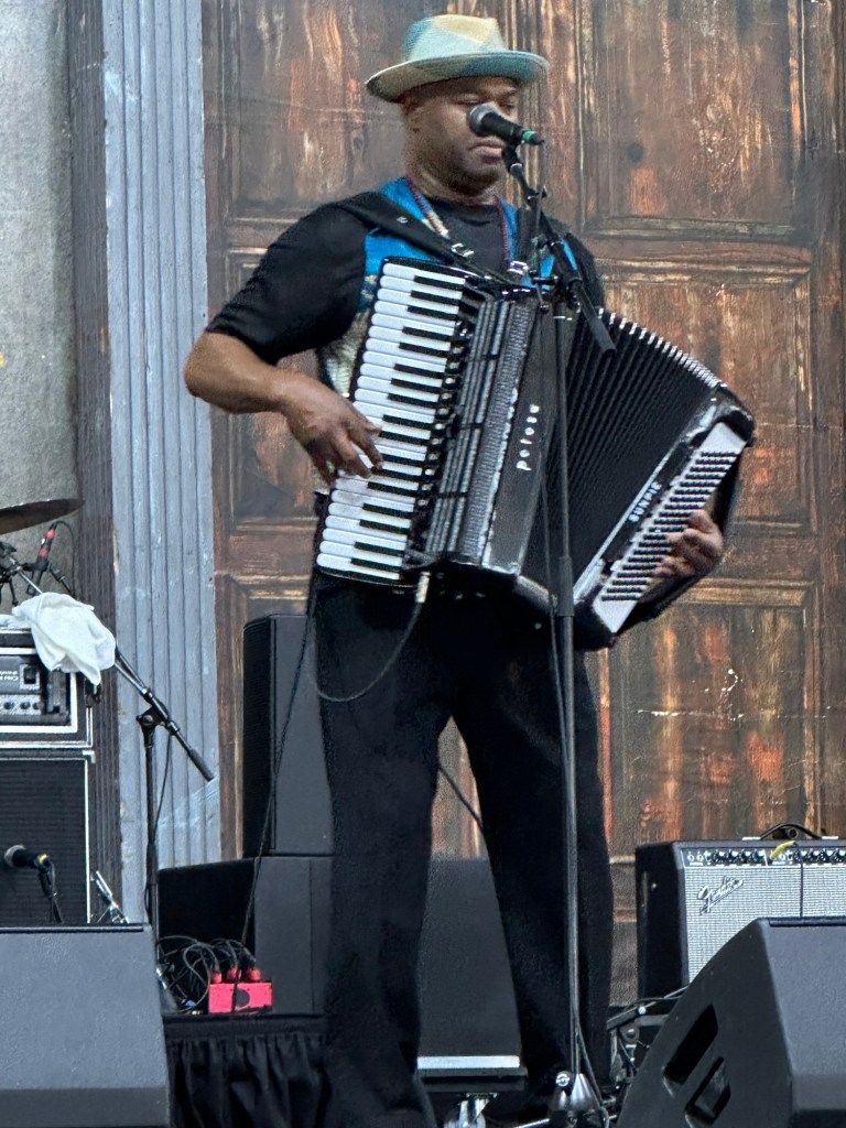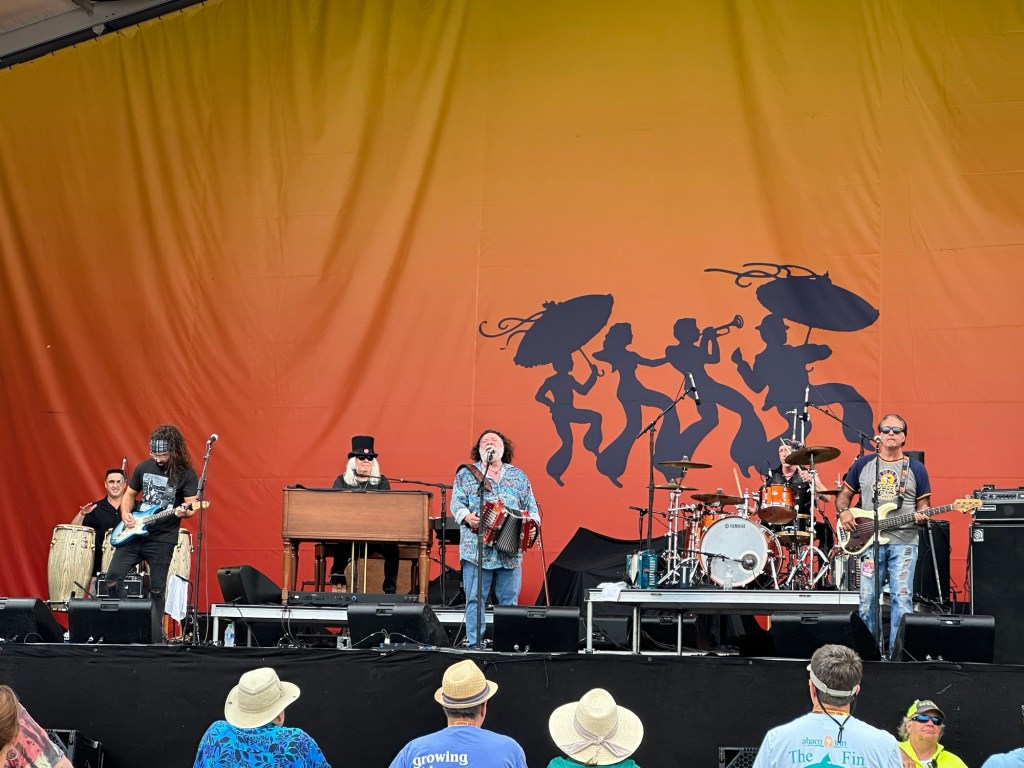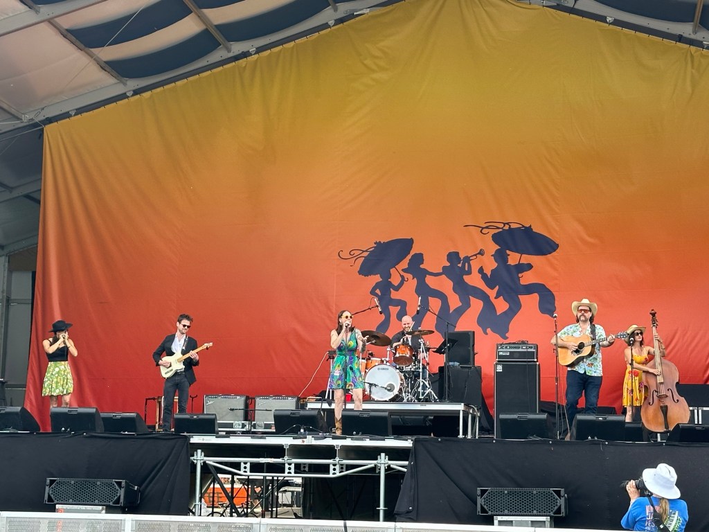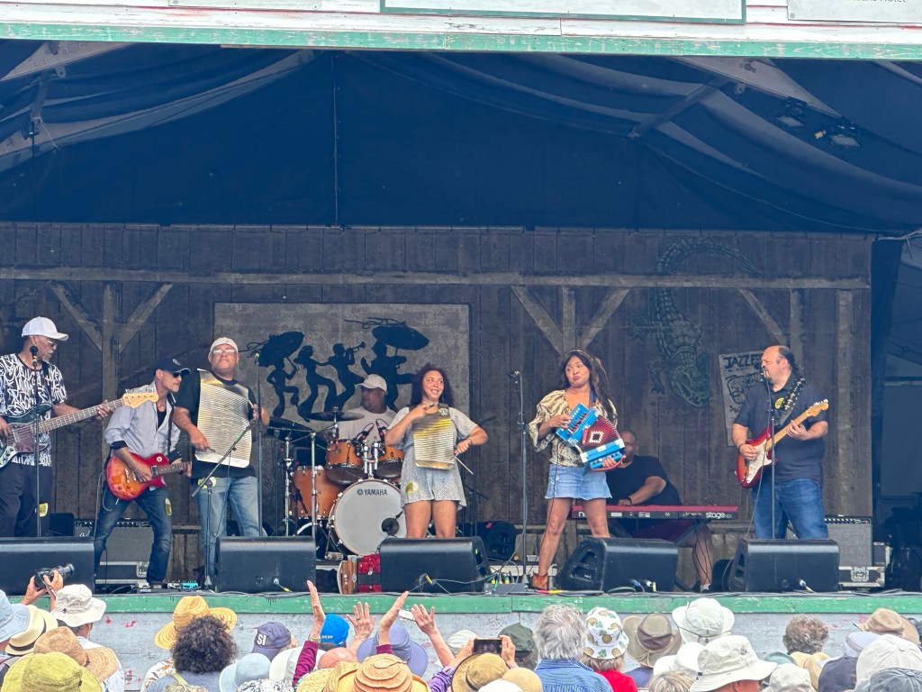 A couple of weeks ago, we saw Hurray for the Riff Raff perform on CBS Saturday Morning. Last week I received a text from my daughter Hannah encouraging me to see them at Jazz Fest. With that recommendation, we went back to Gentilly Stage to check them out. After a bit of a delay their set started. The sound mix was a little off and we stuck around for a few songs.