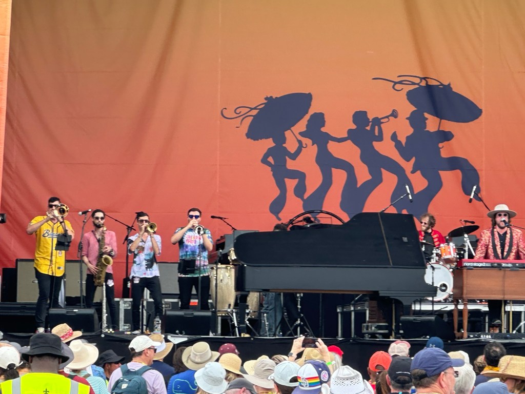 After CJ, it was back to Festival Stage to see The Revivalists followed by The Killers. We saw The Revivalists five years ago at the Fest and they gave a great performance. The Killers have released other albums since Hot Fuss, but the popularity of that album, released 21 years ago, is why they were a Jazz Fest headliner. The other headliner Friday was Jon Batiste (which some in our group went to), but I saw him last year at Jazz Fest so I figured I would rock out to Mr Brightside and Somebody Told Me, two of the biggest rock anthems of this century.