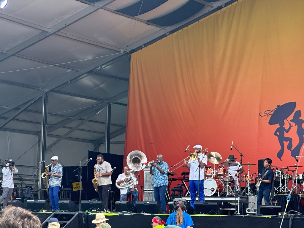 Our Thursday music highlights started at Fais Do Do Stage with The Revelers. At Gentilly Stage, we saw New Orleans Nightcrawlers.
