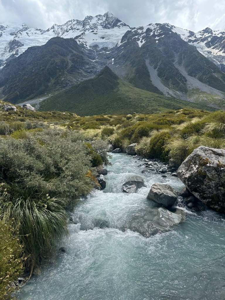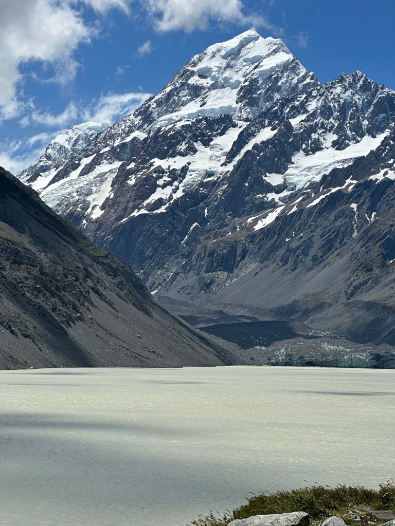 We arrived at Aoraki/Mt Cook and hiked the Hooker Valley Track, and we both agreed—this is the BEST HIKE we’ve ever done! The snow-capped mountains and surrounding natural beauty were absolutely breathtaking. The 10-kilometer trail featured three suspension bridges spanning the fastest-flowing water we’ve ever seen, making the experience even more exhilarating.