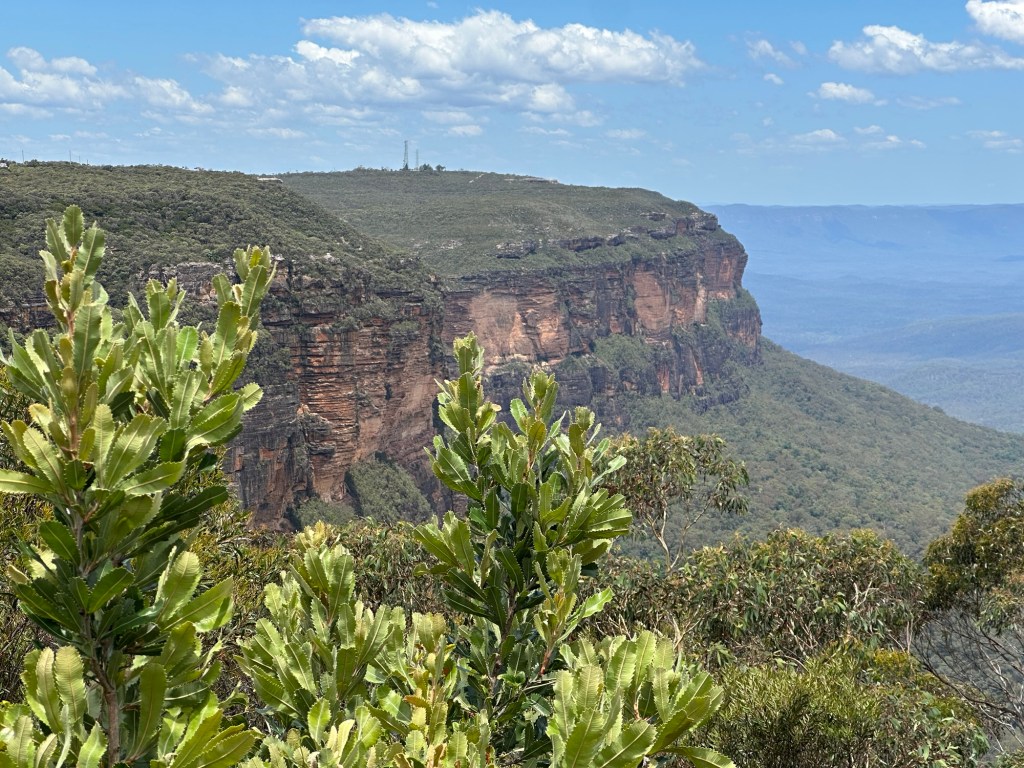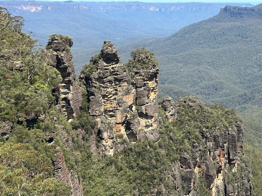 This morning, we checked out of the hotel, took an Uber to pick up a rental car near the airport (MG SUV), and drove along the Great Western Highway (not quite as “great” as it sounds). Our first stop was Wentworth Falls in the Blue Mountains National Park, followed by Echo Point Lookout to see the stunning Three Sisters rock formation. The lookout was packed with people due to the holiday weekend, but the view was absolutely worth it.