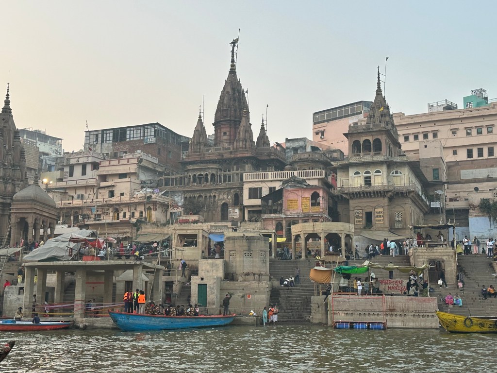 We boarded a boat and drifted offshore as Manu explained the significance of the Ganges. Along its banks, bodies were being cremated in accordance with Hindu traditions—a practice that has taken place for thousands of years. Around 150 people are cremated daily in Varanasi, and their ashes are returned to the sacred river.