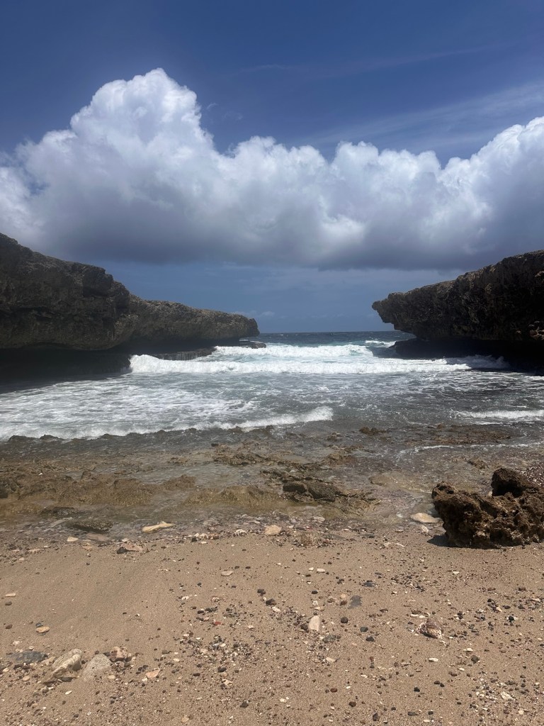 Tuesday we drove near the Northern tip of Curacao and went to Shete Boka National park where we hiked along limestone bluffs and went into a cave as we watched the waves pound against the coral rock formations.