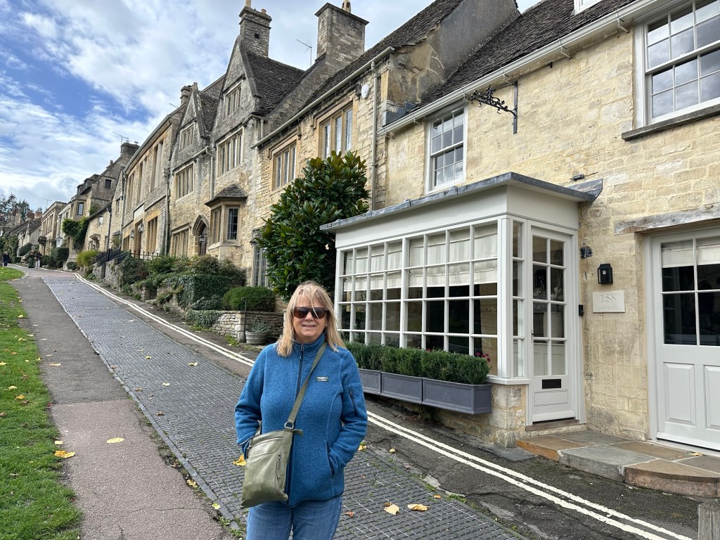 Next was Bourton-on-the-Water, called “the Venice of the Cotswolds.” Let’s not get carried away, it had a few pretty creeks, but definitely not Venetian canals. When it started drizzling, we ducked into Green and Pleasant Tea Rooms, where Jane had tea and I had a latte. Then came Lower Slaughter, a lovely hamlet with the sun shining again.