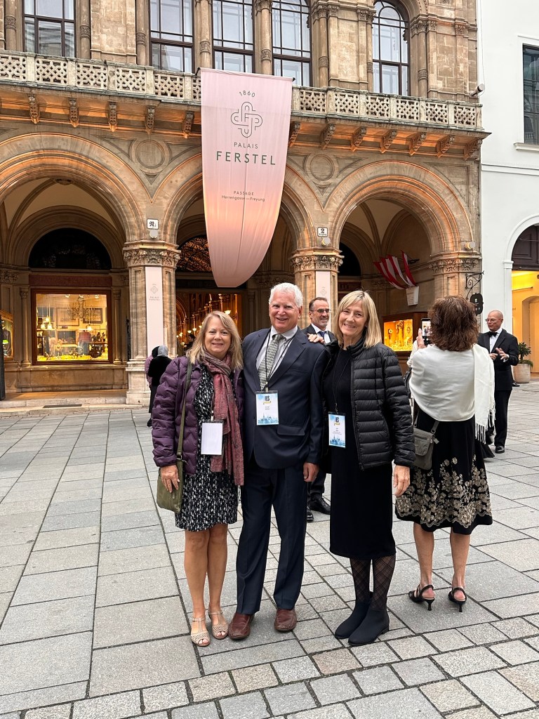 Saturday evening brought us full circle, literally, to Palais Kinsky, where IES held classes until 1982. Lora and I explored the building, trying to imagine which rooms we might have studied in had we attended just one year later. We chatted with fellow alumni, though remarkably, not a single person from our 1981 cohort appeared. The Dean of Students confirmed what we’d observed: Vienna is dramatically cleaner and brighter than the somewhat gritty city we’d known in the early 1980s. Comprehensive urban renewal efforts have transformed it while preserving its essential character.