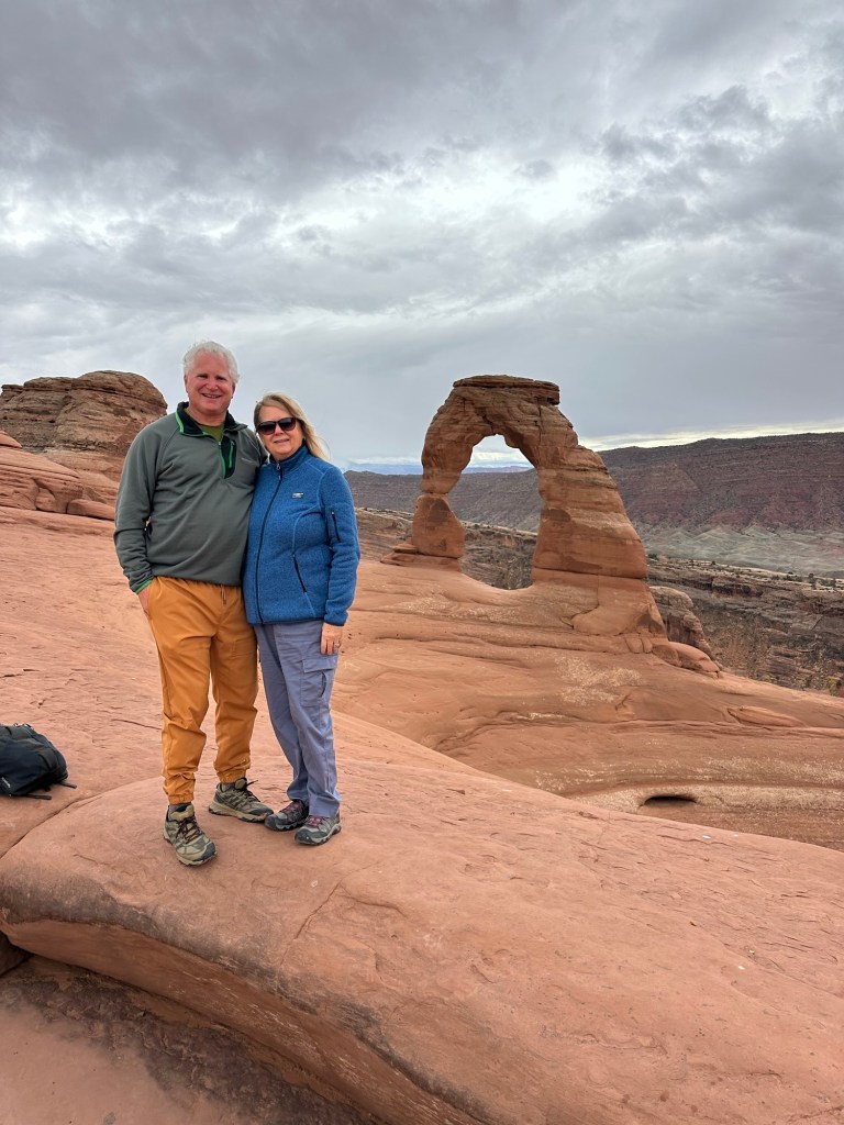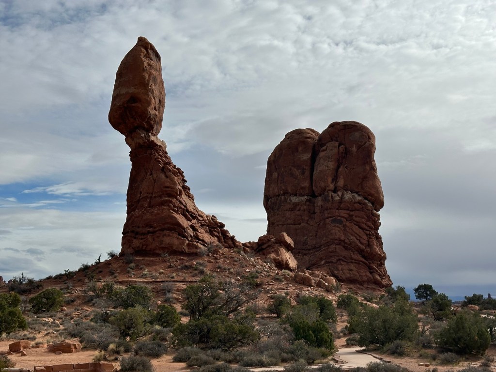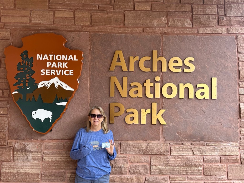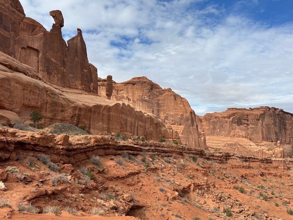 This morning we woke up early and made the three-hour drive to Moab. After an early lunch at Love Muffin Cafe, we headed into Arches National Park, where we purchased a senior lifetime NPS pass. Our first stops were the Park Avenue Viewpoint and Balanced Rock.