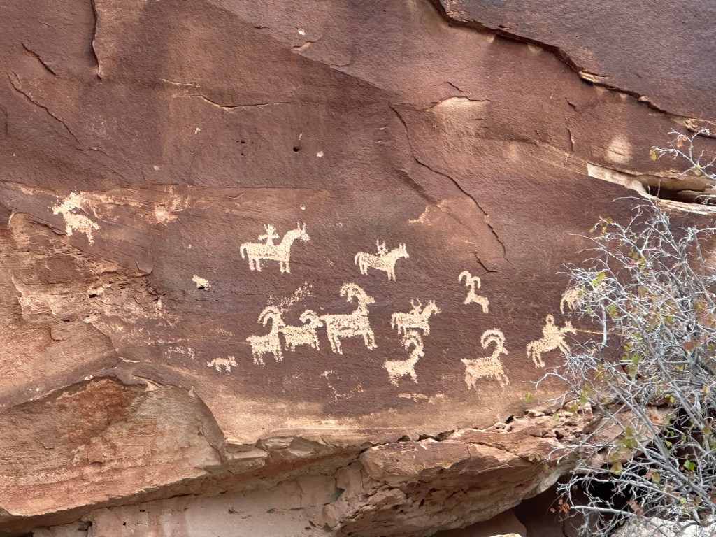 Our first hike, and the longest of the day, was to Delicate Arch. It was a 3.25 mile hike and the reward was gorgeous. On our way back to the trailhead, we stopped at the petroglyph panel to see the stone carvings created by Native Americans in the 1530s.