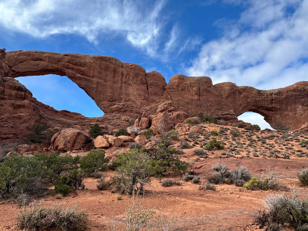 Wednesday morning in Moab we grabbed bagel sandwiches at Red Rock Bakery and then made the short drive back to Arches National Park. Our first hike was the Windows Trail, where we visited the North Window, South Window, and Turret Arch. We continued on the Windows Primitive Loop, which gives a great reverse view of the Windows, and then headed down to the Double Arch Trail. Before leaving the park, we stopped at a few additional viewpoints.