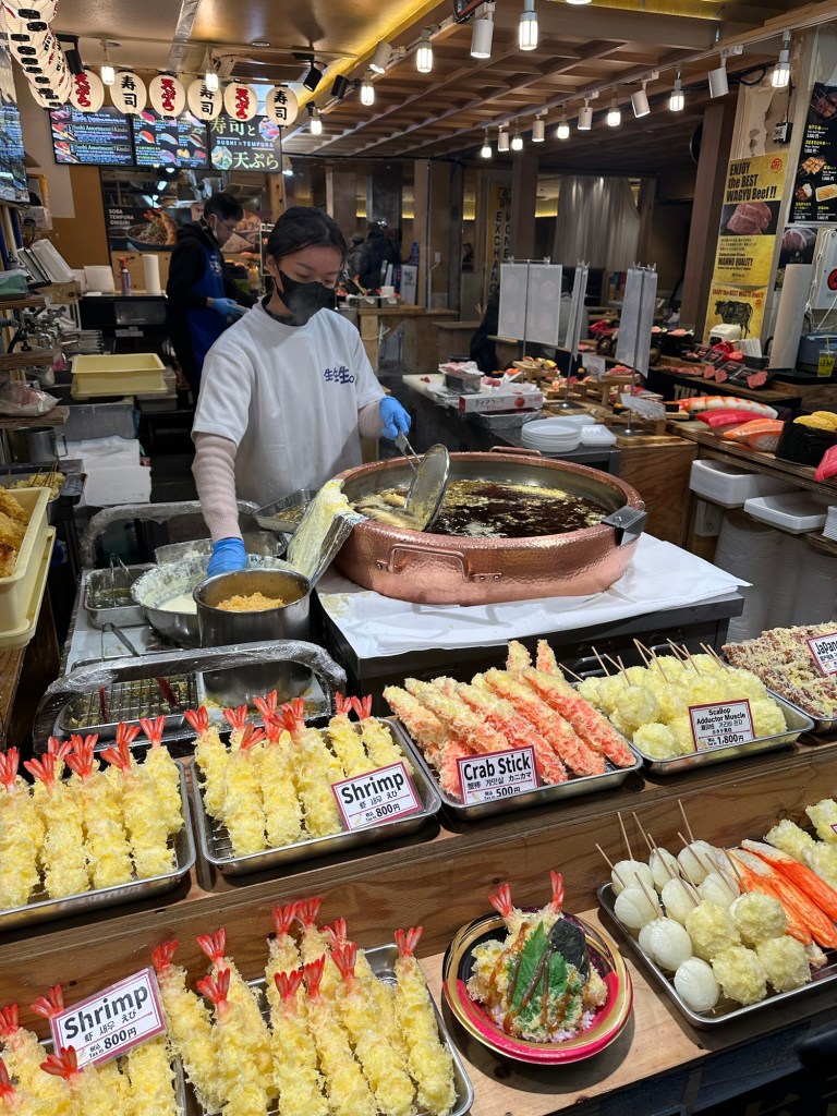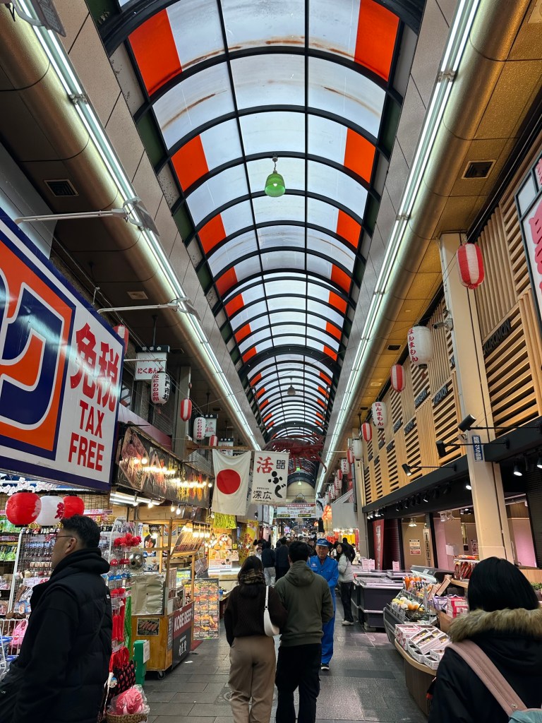 On Saturday, we explored the Shinsaibashi neighborhood, Kuromon Market, Dotonbori, and saw the iconic Glico Running Man sign. Later in the afternoon, we joined a walking tour that took us from Namba to Shinsekai. For dinner, we had delicious ramen at Tenkaippin.