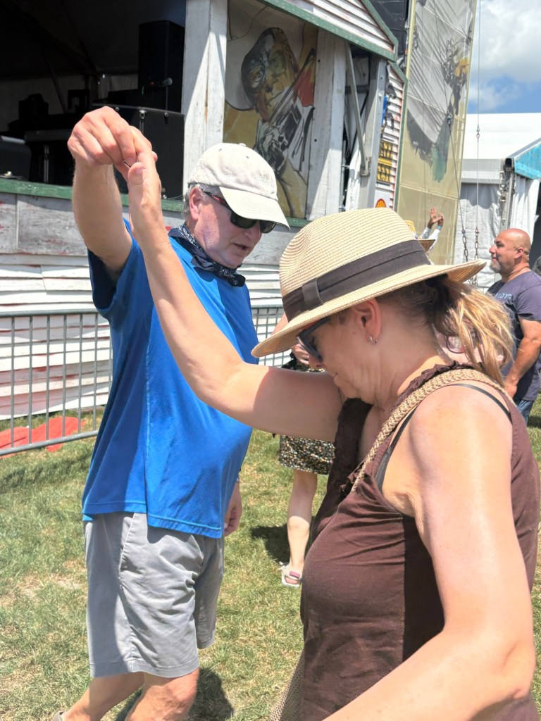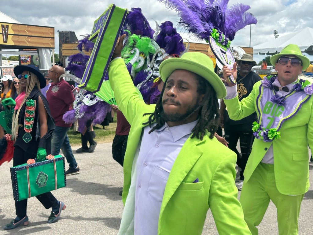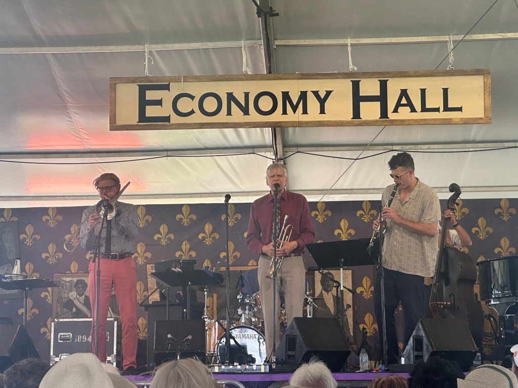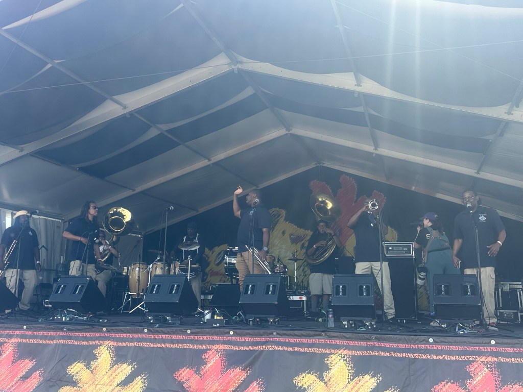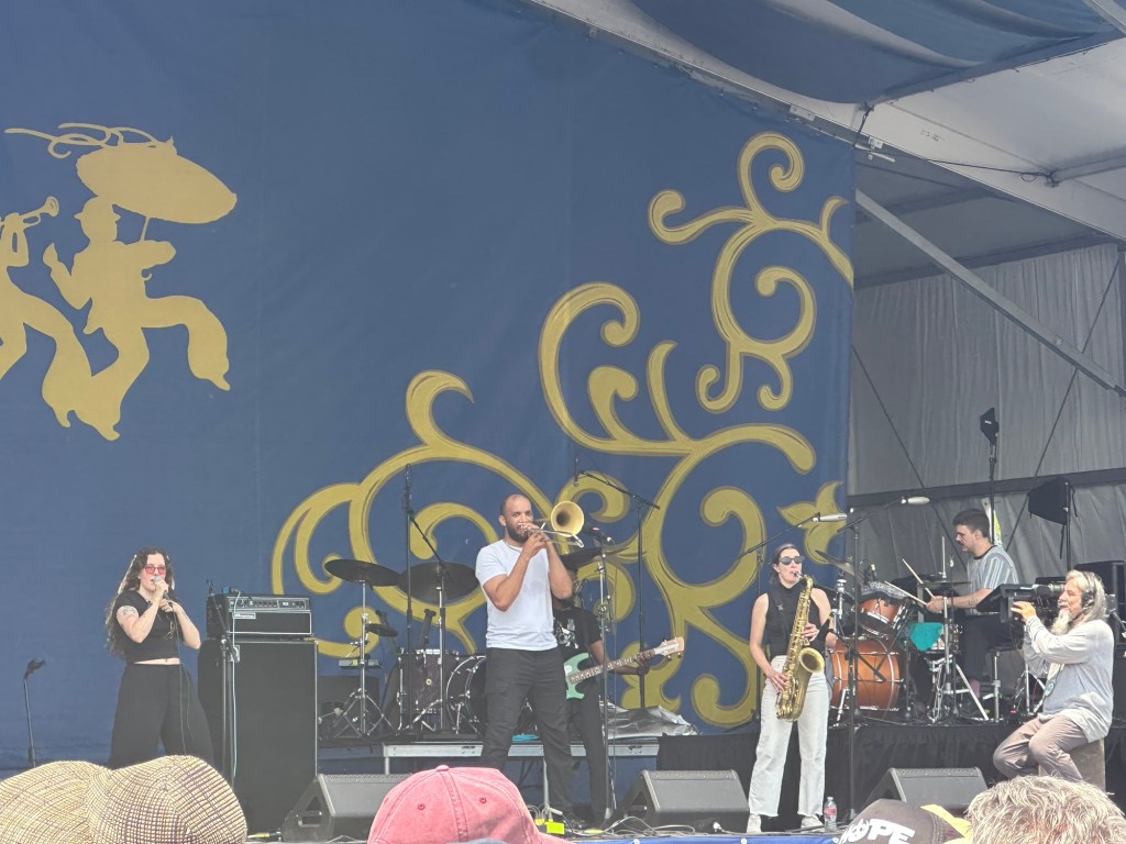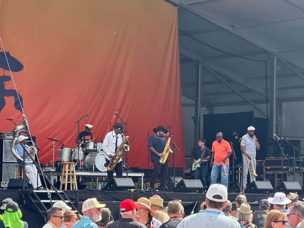 The walk from our Airbnb to the entrance of the Fair Grounds Race Course is about 1.4 miles. We kicked off Thursday at Jazz Fest in Economy Hall, enjoying traditional New Orleans jazz with Norbert Susemihi’s New Orleans All-Stars. We then made our way to the Jazz & Heritage Stage to catch some of the High Steppers Brass Band before heading to the Fais Do-Do Stage for Jeffrey Broussard & The Creole Cowboys. Jane and I even managed to get a little dancing in.