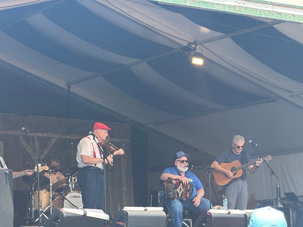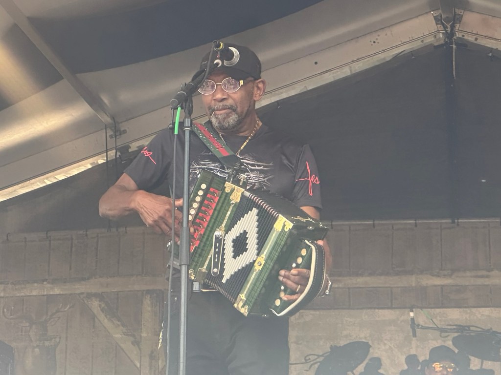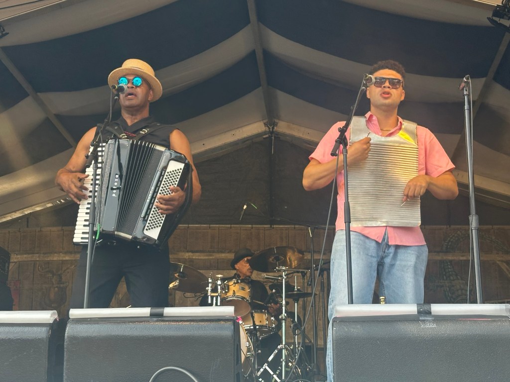 I spent much of Sunday at the Fais Do-Do Stage, catching Jambalaya Cajun Band, followed by Zachary Richard and longtime Jazz Fest favorite Sunpie and the Louisiana Sunspots. Sunpie mentioned it was his 32nd year playing Jazz Fest, coincidentally, our first Jazz Fest was 32 years ago.