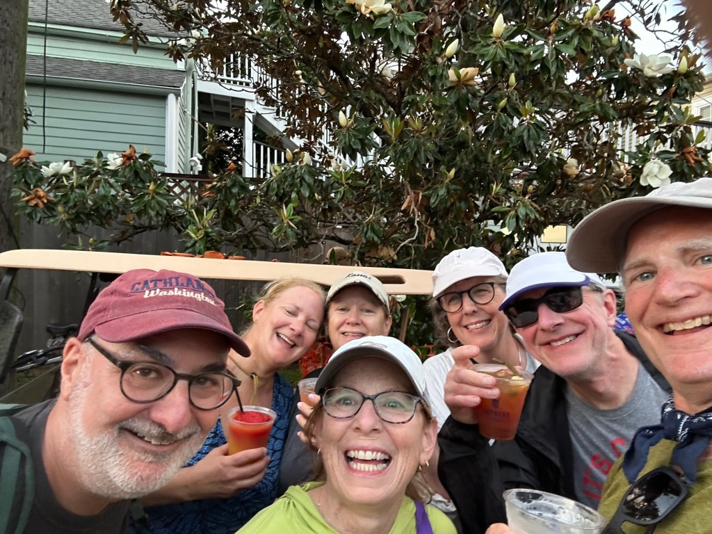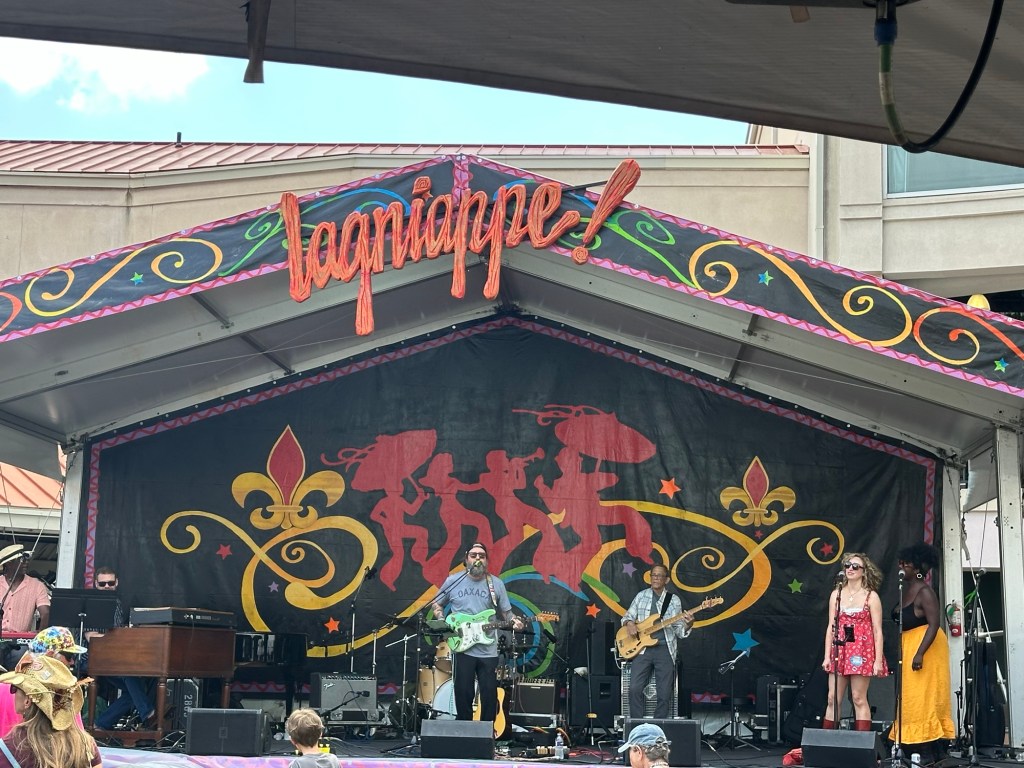 We had a wonderful time attending the first weekend of Jazz Fest 2026. Back in December, I reserved a five-bedroom house on Airbnb, and it turned out to be the perfect base for the 10 of us – Jane and me; Karen and Jeff; Katie and Doug; Gabrielle and David; and Allie and Dana. It was really special staying under one roof and being able to walk to the festival each day.