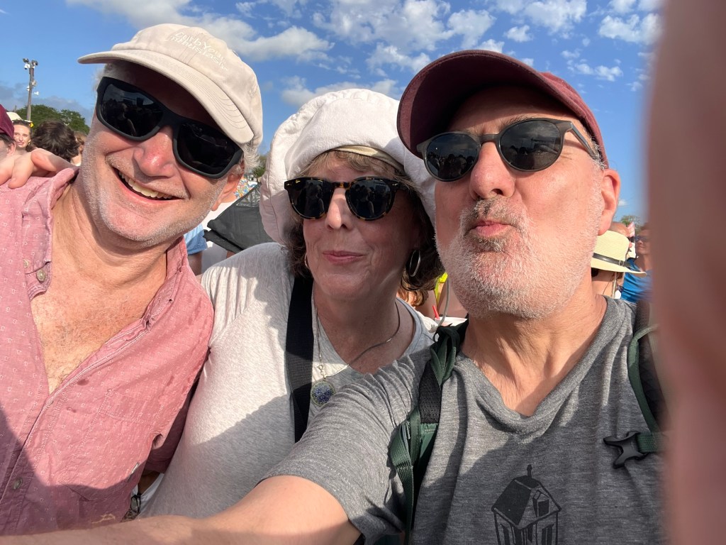 The highlight of the day, and the entire weekend, was David Byrne. I don’t remember the Gentilly Stage ever being so crowded; we watched from the middle of the track. A few years ago, Jane, Hannah, John, and I saw his American Utopia show on Broadway, and this performance had a similar vibe, with musicians and singers constantly moving in a tightly choreographed production. Not everyone saw Byrne, some opted for Rod Stewart, which led to some good-natured banter later that night back at the Airbnb.